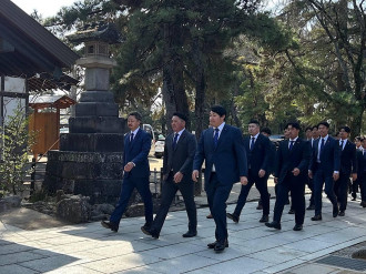 船橋に拠点を置くプロ野球独立リーグ球団「千葉スカイセイラーズ」が2月23日、船橋大神宮(船橋市宮本5)で必勝祈願を行った。