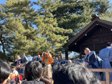船橋大神宮(船橋市宮本5)で毎年恒例の「節分祭」が行われた。豆まきでは松戸徹船橋市長や氏子、年男・年女が豆まきに参加し、多くの参拝者が神楽殿の周りに集まった。