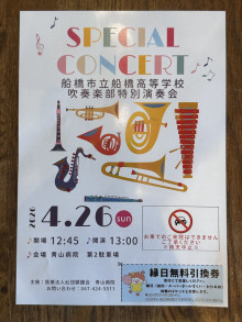 目玉企画の一つとなる市立船橋高校吹奏楽部の演奏会は13時開演(12時45分開場、雨天時は中止)。同校は全国大会出場経験を持つ強豪として知られている。