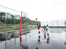 船橋市医療センター前のバス通りの一角に4月4日、「夏見町2丁目まちかどスポーツ広場」(船橋市夏見町2)が開設された。