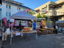船橋市地方卸売市場から歩いてすぐ、大神宮通りに位置する「大矢建工」(船橋市市場1)で11月30日、同所初となるイベント「おさんぽマーケット@ふなばし」が初開催された。