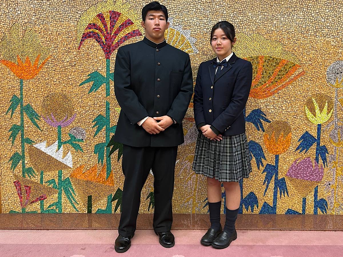 飯山満南小学校出身の兄・佐藤秀一郎さんと妹・優さんが11月18日、9月に行われたビーチレスリングの世界大会に出場したことを松戸徹市長と松本淳教育長に報告するため、千葉県レスリング協会に所属する父・秀男さんと船橋市役所を訪れた。