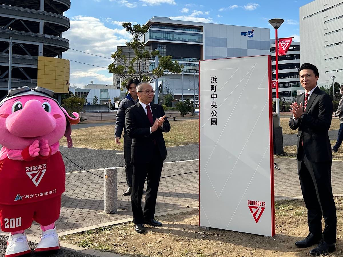 「LaLa arena TOKYO-BAY」に隣接する浜町中央公園(船橋市浜町2)で12月6日、「千葉ジェッツふなばし装飾完成記念セレモニー」が開催された。