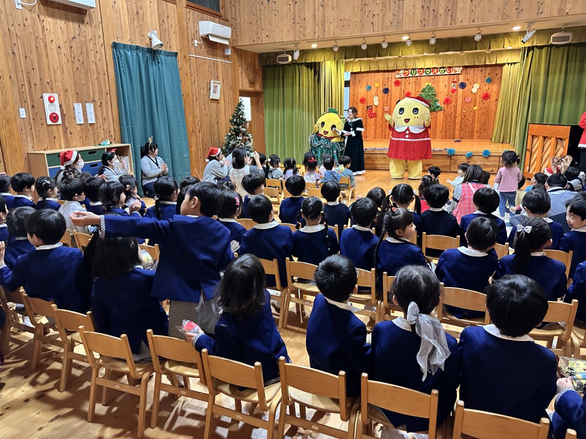 船橋のご当地キャラクター「ふなっしー」とその家族がクリスマスコスチュームに身を包み、12月24日、船橋市内3カ所の子育て支援施設を訪問し、子どもたちにプレゼントを手渡した。