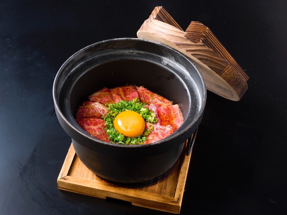 レアで焼いた肉がのった「土鍋ご飯」