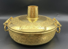 8寸のしゃぶしゃぶ鍋。石川光一さん作。石川工房は今上天皇の皇太子時代のご成婚記念品や、 大相撲の金杯などの製作を手がけ、内閣総理大臣賞も受賞している(提供写真)