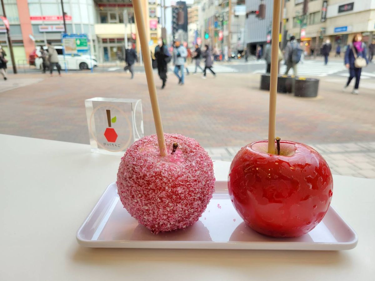 びっくりんごの「いちごみるく」と「プレーン」(左から)