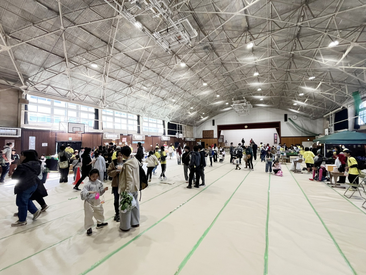 地元農家の野菜販売ブースや子どもたちが考えた出店などが体育館に並んだ