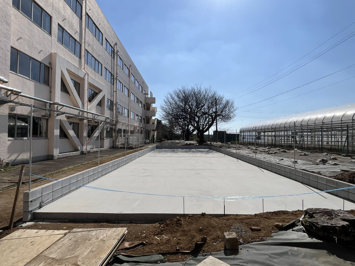 校内に新設中の新しい田んぼ