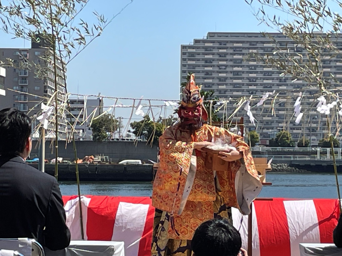 船橋漁港(船橋市湊町3)で4月3日、毎年この日に開催する「水神祭」が執り行われた。