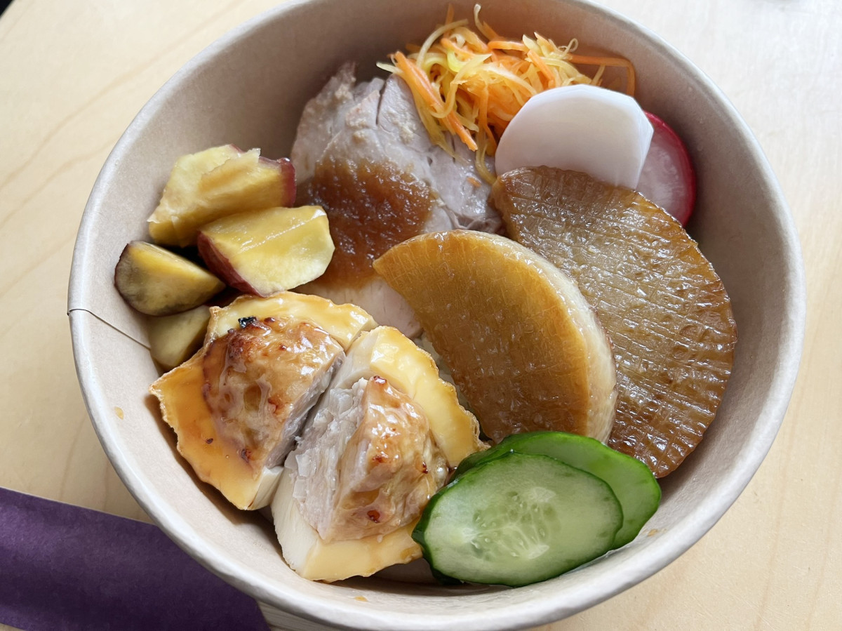 弁当。弁当にする際は玄米や白ご飯(各300円)、のりごはん(320円)などからご飯の種類が選べる=高根木戸駅近くの総菜店「ウーフーズ」が2周年