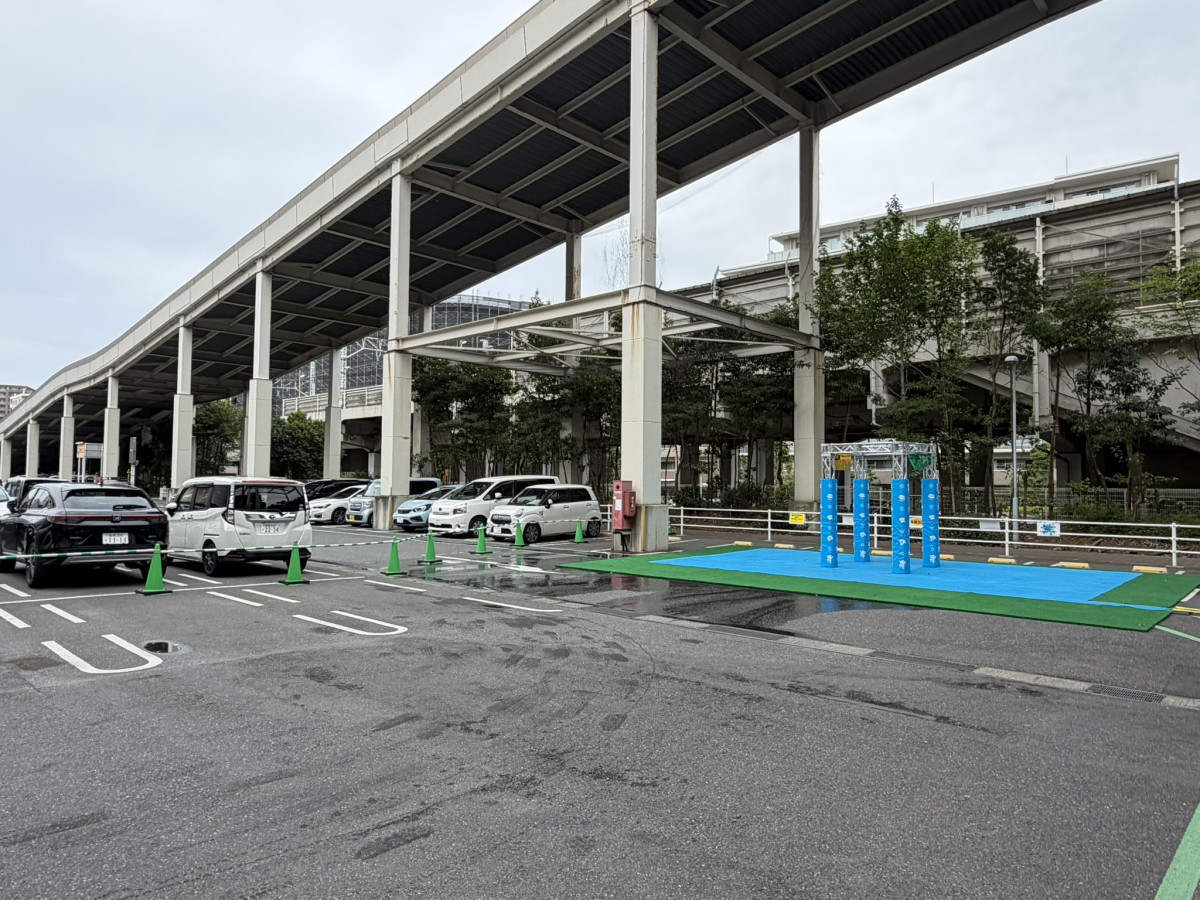 駐車場の一画に水遊びスポットがオープン=イオンモール船橋の駐車場で水遊びスポットが稼働