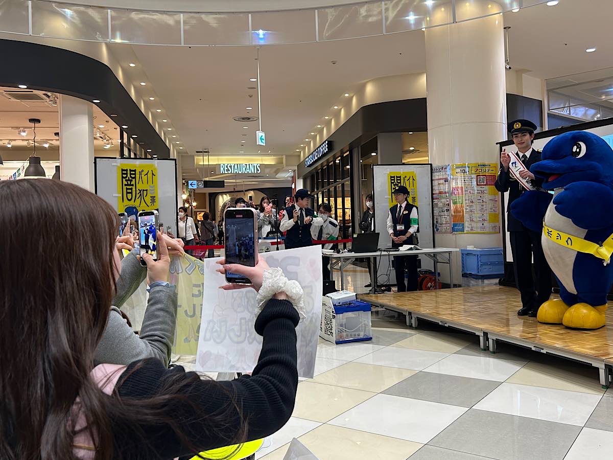 船橋警察署が主催する「電話de詐欺被害防止キャンペーン」がイオンモール船橋(船橋市山手1)で4月24日に行われ、一日警察署長を務めた船橋市出身の俳優・綱啓永さんが制服姿で登場した。