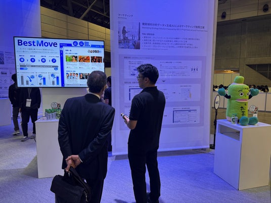 中でも注目を集めたのが、新規事業開発から生まれたマーケティング施策立案ソリューション「BestMove」です。購買傾向分析データと生成AIを掛け合わせたこのソリューションは、ユーザー企業である伊藤園様の活用事例とともに紹介され、多くの来場者の関心を集めました。