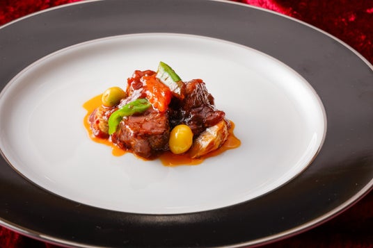 コースは、見た目も華やかな前菜に始まり、中華の王道「ふかひれ」を贅沢に用いた白金に輝くスープ、北京ダックなど、特別な夜にふさわしい逸品が並びます。メインには、クリスマスらしい肉厚な牛フィレ肉の特製スパイス炒めと、海鮮あんかけ焼きそばをご用意しました。