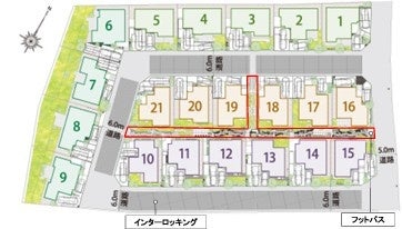 フットパスの南側に位置する街区です。フットパスを借景とするほか、 庭を南側に設けてプライバシーを確保。両面が道路に接しているた め、開放感も楽しむことができます。