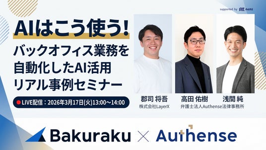 本セミナーは、株式会社LayerXとAuthense法律事務所がそのような課題を抱えるバックオフィス部門の担当者に向け、AI活用の考え方と実践知を共有します。