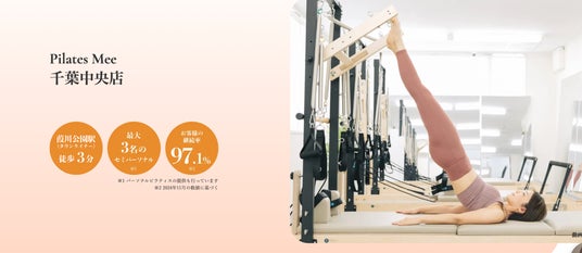 マシンピラティス専門スタジオ「Pilates Mee(ピラティスミー)」を運営する株式会社RiAGEL(代表取締役:田村亮人)は、2026年5月1日、千葉県千葉市中央区に「Pilates Mee 千葉中央店」をオープンします。葭川公園駅・千葉中央駅・千葉駅から徒歩圏内の新店舗では、インストラクター1名につき最大3名の少人数制で指導するセミパーソナルピラティスと、完全個別のパーソナルピラティスを提供します。