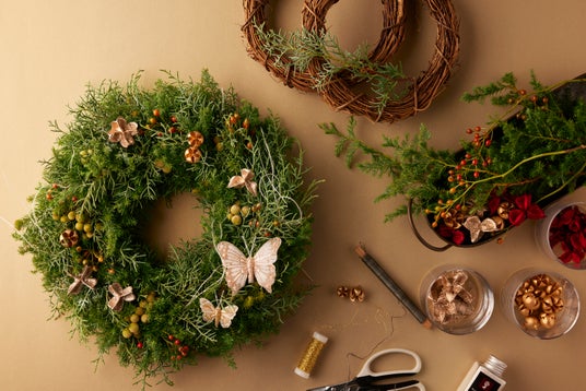 完成したリースはお持ち帰りいただけ、フレッシュグリーンならではの爽やかな香りと、時間とともに変化する風合いをお楽しみいただけます。