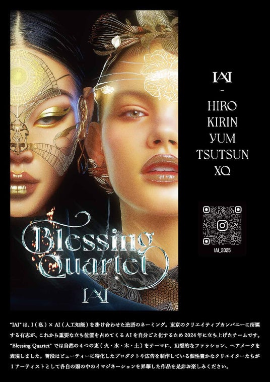 東京のクリエイティブカンパニーに所属する有志が、これからのクリエイティブワークにおいて重要な立ち位置を占めてくるAIを自分ごと化するため、2024年に立ち上げました。今回のNFFT2026-SSは、IAIがこれまでに検証してきたAIクリエイティブ作品を対外的に発表するはじめての場になります。普段はビューティーに特化したプロダクトや広告の制作しているIAIの個性豊かなクリエイターたちが、1人のアーティストとして各自の頭の中のイマジネーションを昇華した作品を是非お楽しみください。