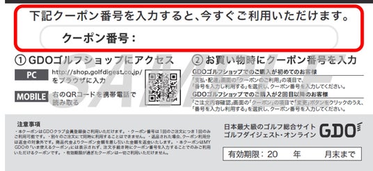 ※2 GDOが提携するゴルフ場のうち、クーポンの利用が可能なゴルフ場が対象となります。利用予定のゴルフ場が対象かどうか、事前に必ずご確認ください。なお、クーポンはプレー料金にのみ利用できます