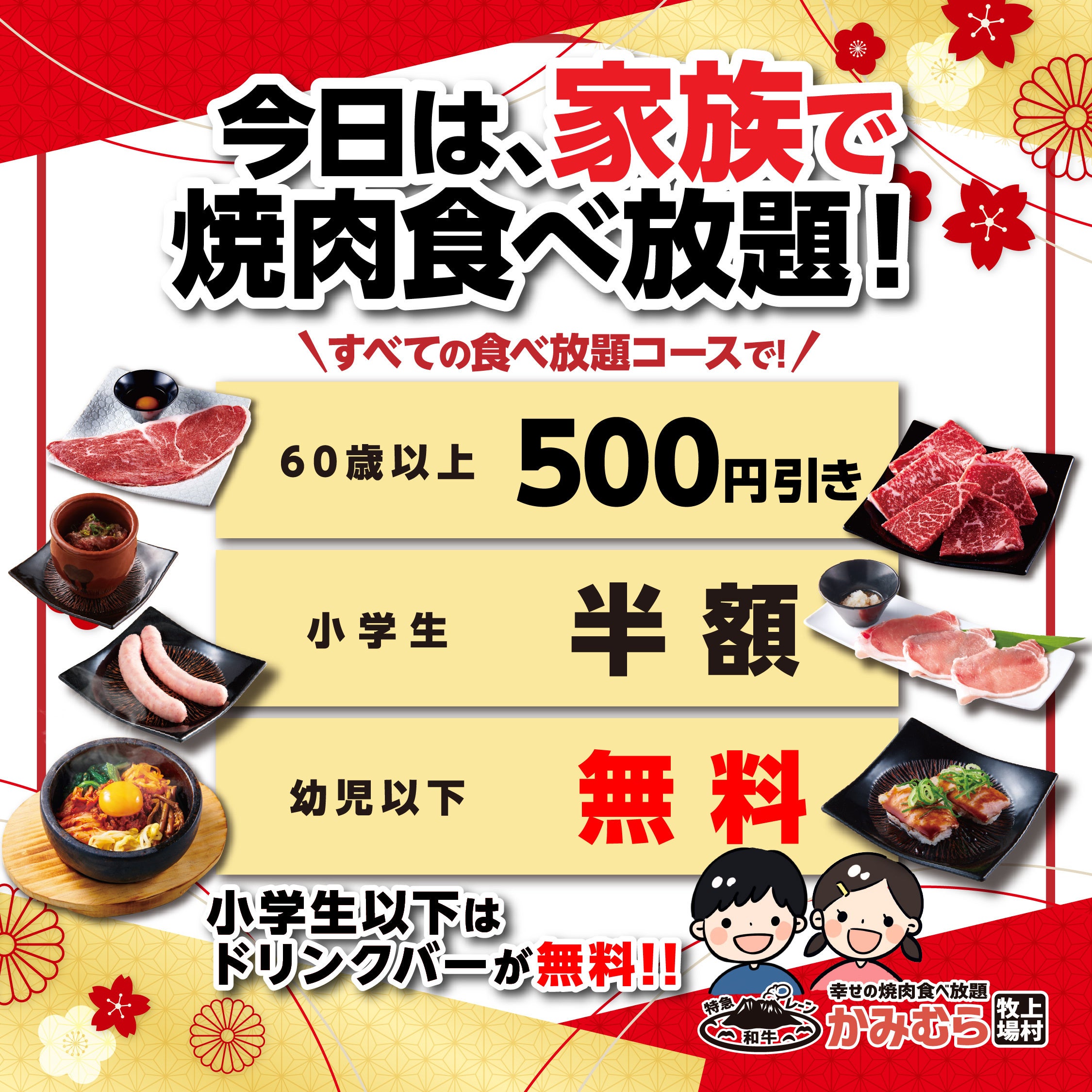 「かみむら牧場」では、“幸せの焼肉食べ放題”をテーマに、幅広い世代が一緒に楽しめる食べ放題を提供しています。ご家族やご親戚が集まる機会に、より気軽にお得に焼肉を楽しんでいただければ幸いです。