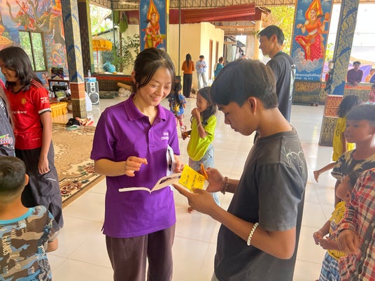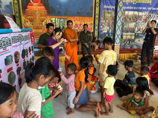 このたび、福島県会津若松市のフリースクール「寺子屋方丈舎」での『世界とつながる講演会』(2025年9月)を起点に、生徒が探究活動として制作した教材が、2025年12月29日にカンボジア王国シェムリアップ州Chi Kraeng(チークレン)の避難民収容寺院及びシェムリアップ州各地の難民キャンプ並びに戦地となったアンロンベンで実施した緊急支援(教育・食料支援)において実際に活用されました。