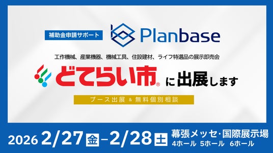 補助金申請支援や経営支援を行うコンサルティング企業の株式会社プランベース(本社:東京都千代田区、代表取締役:武衣 貴志)は、2026年2月27日(金)、2月28日(土)の両日、株式会社山善が事務局を務める工作機械等の展示即売会「2026幕張どてらい市」に出展します。「どてらい市」は、工作機械・産業機器・工具などを中心に、全国各地で開催されてきた展示即売会で、2025年に誕生50年を迎えました。長年にわたり製造業をはじめとする多くの企業の設備投資を支えてきた歴史ある展示会として、毎年多くの来場者が訪れています。