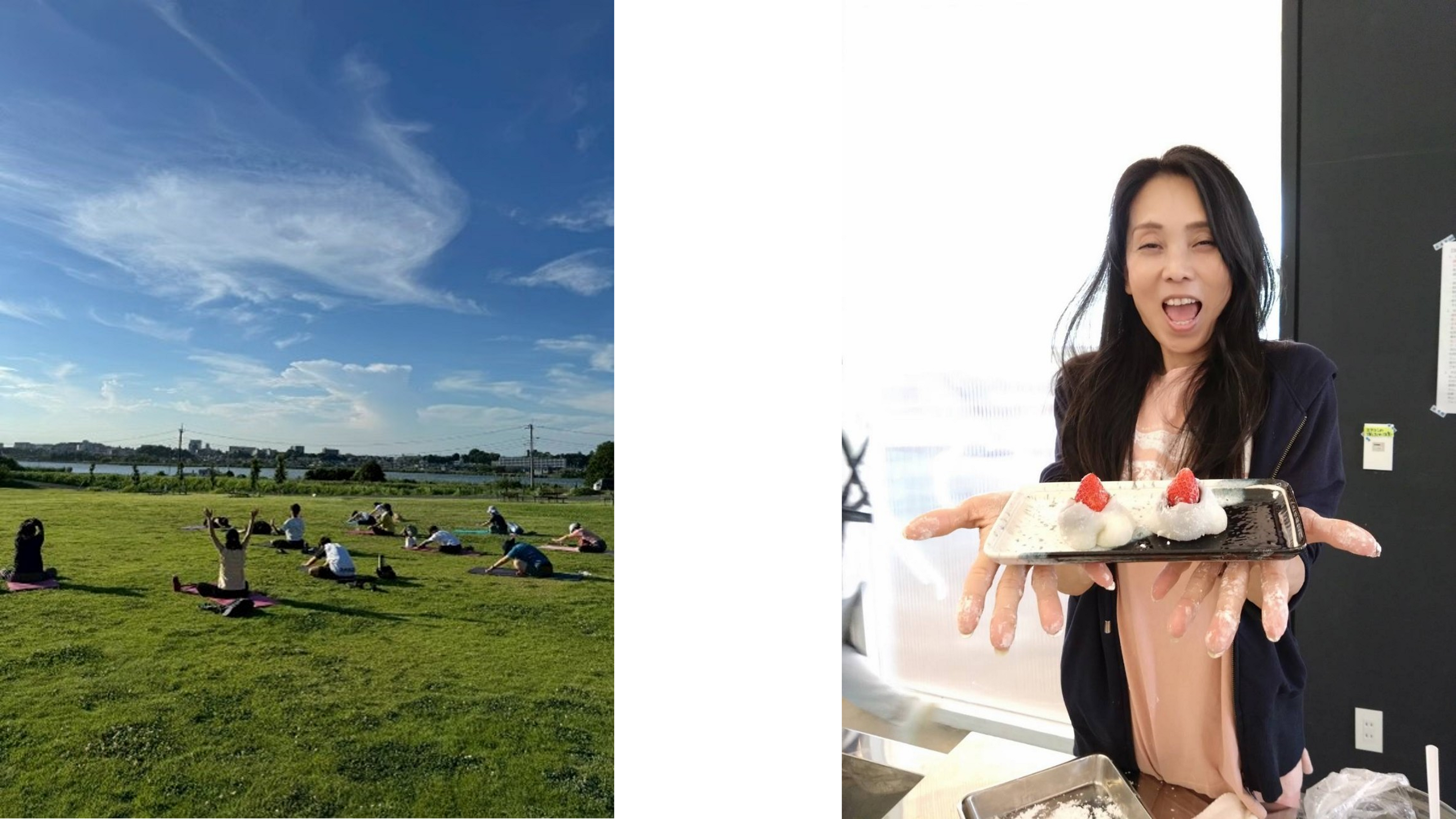毎月第4木曜日に開催しているアウトドアヨガです!ヨガのあとに、旬のいちご使った、いちご大福づくりにチャレンジできます!