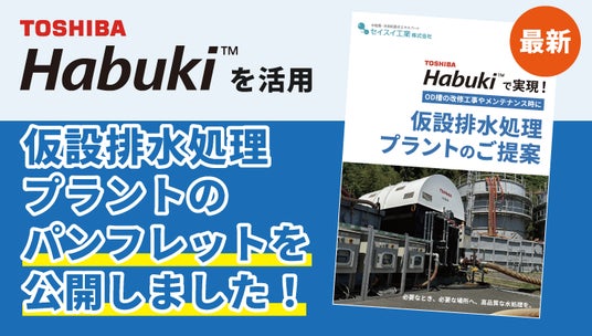 水処理・汚泥処理のエキスパートである、セイスイ工業株式会社(本社:千葉県千葉市、代表取締役:井本謙一、以下 セイスイ工業)は、株式会社東芝(以下 東芝)が提供する「Habuki(TM)」を活用した仮設排水処理プラントの最新パンフレットを制作・発行いたしました。