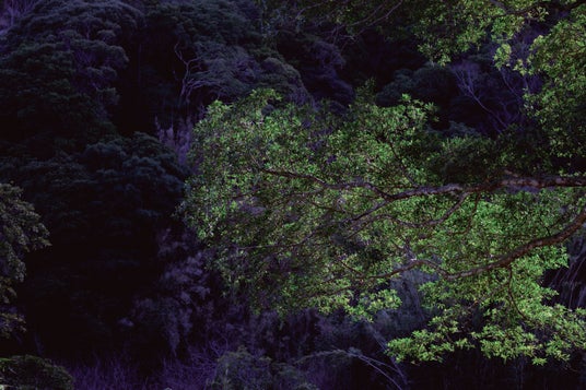 ・夜、木々の間からのぞく星空