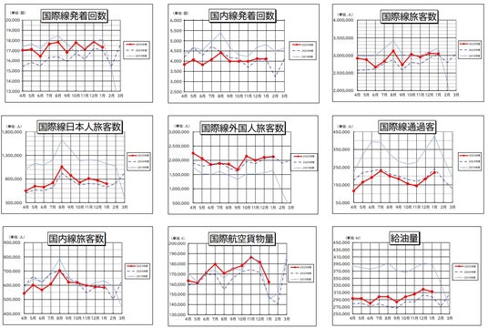 ● 国際線貨物便発着回数(※2)についても、中国路線の旅客便の減少を受け、本来旅客便で運ぶ予定だった貨物を輸送するための貨物便が増便されたこと等から、2,561回(前年同月比112%)となりました。