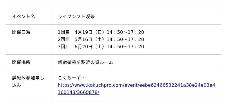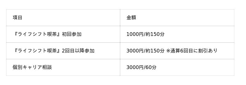 セカンドライフ事業のメインイベント『ライフシフト喫茶』は、対話型の有料コミュニティです。